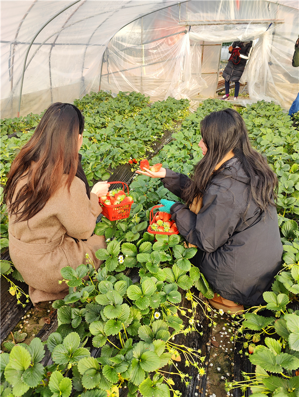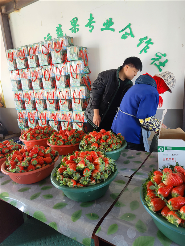 面对“天公不作美”,是先福合作社选择了“人努力”。在农业科技人员的持续指导下,合作社探索了一系列应对技术:“我们摸索出了适时延迟定植、大棚遮阳降温、智能通风控湿、科学调控氮磷钾肥配比、精准覆盖地膜等方法。”汤善姐介绍,这些技术环环相扣,核心目的就是为草莓创造最佳的生长微环境,对抗不利气候,确保花芽顺利分化,从源头保障产量与品质。