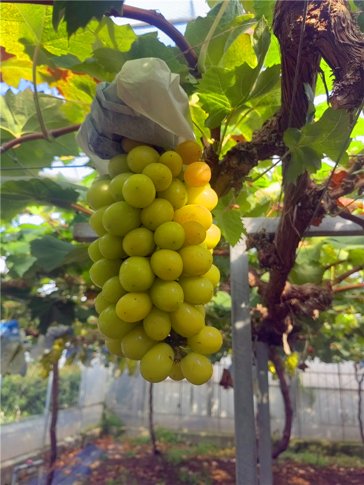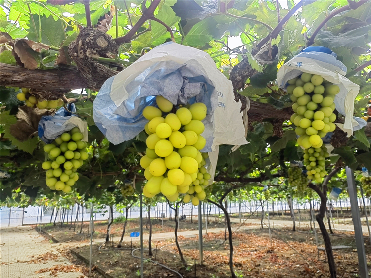 然而,随着近年来“阳光玫瑰”在全国范围内大面积扩种,市场价格明显回落。面对市场波动,合作社敏锐调整策略,主动优化品种结构。“我们逐步将‘阳光玫瑰’面积调整到30多亩,同时增加了巨峰、夏黑、巨玫瑰、浪漫红颜等品种,现在也是30多亩。”胡鹏说,通过引进和培育早、中、晚熟系列品种,基地成功将鲜果供应期从6月延续至10月,实现了错峰上市、风味多元,有效抵御市场风险。